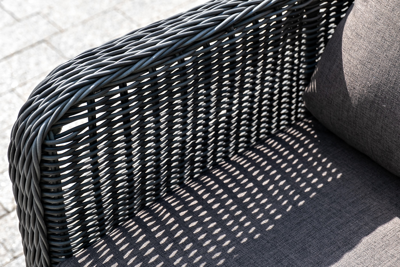 Ручное круглое плетение является основным декоративным элементом мебели. Оно выполнено из искусственного ротанга в цвете графит.