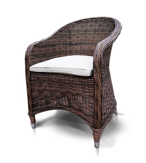 В основе - алюминиевый каркас, оплетенный круглым искусственным ротангам ручным методом.