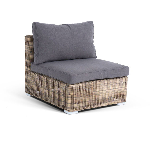 Прямой модуль «Лунго», выполненный из круглого искусственного ротанга натурального соломенного оттенка, позволяет использовать не только как самостоятельный элемент, но и быть частью лаунж-зоны, в которую данная модель превосходно интегрируется.