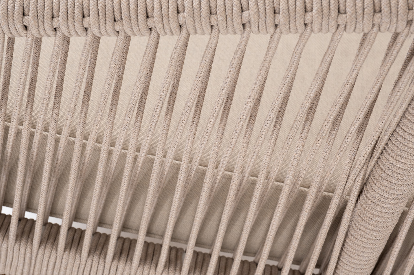 Боковины каркаса вручную оплетены роупом - эластичными синтетическими лентами, изготовленными из высокопрочных полиэфирных волокон. Цвет оплетки - бежевый. Основание дуб.